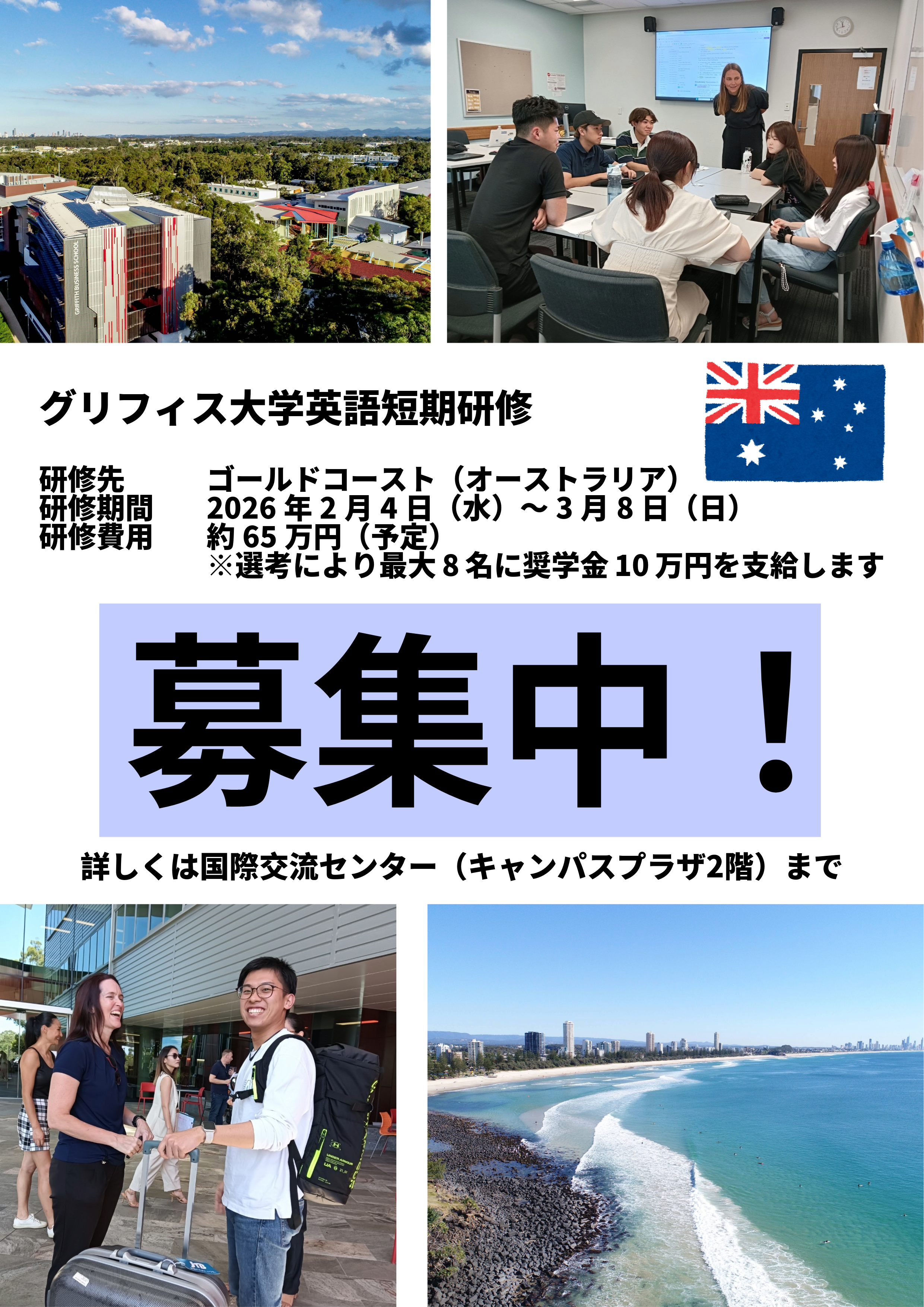 詳しくは国際交流センター(キャンパスプラザ2階)でご相談ください。