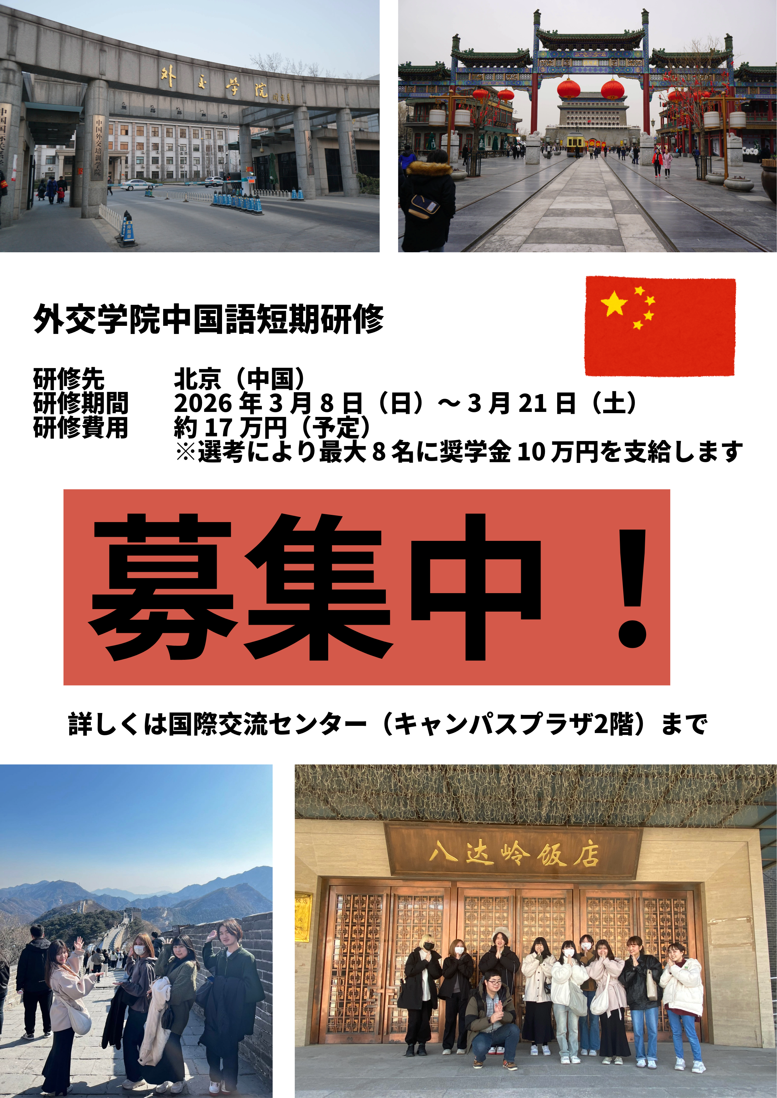 興味のある方は国際交流センター(キャンパスプラザ2階)まで!