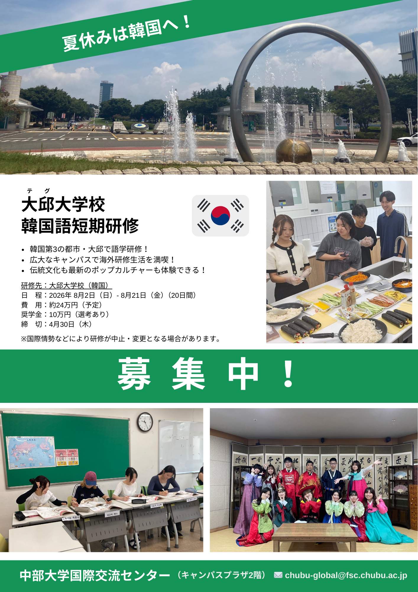 研修先:大邱大学校(韓国)