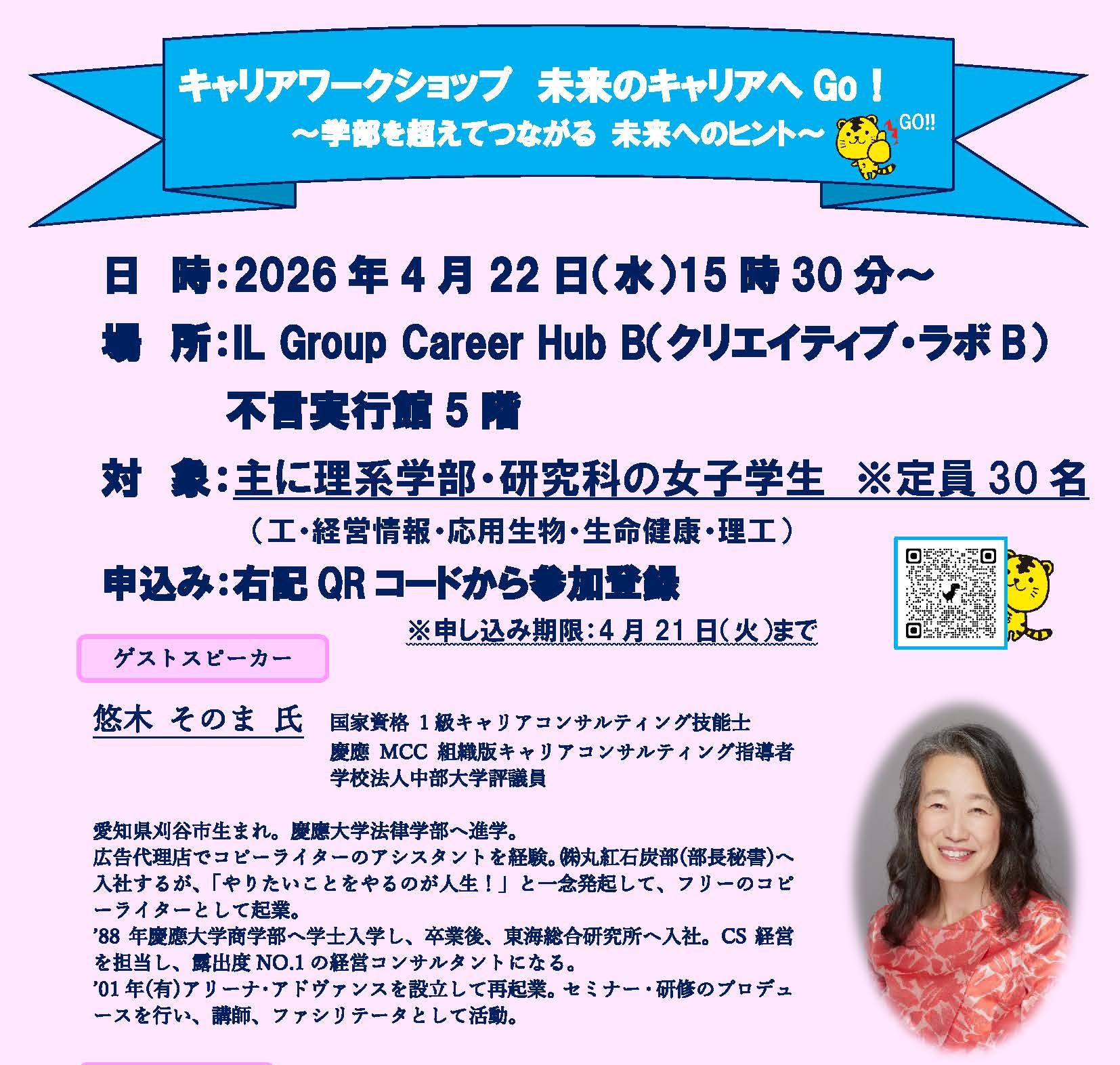 理系女子学生向け講演会『未来のキャリアへGo!~学部を超えてつながる 未来へのヒント~』の開催について