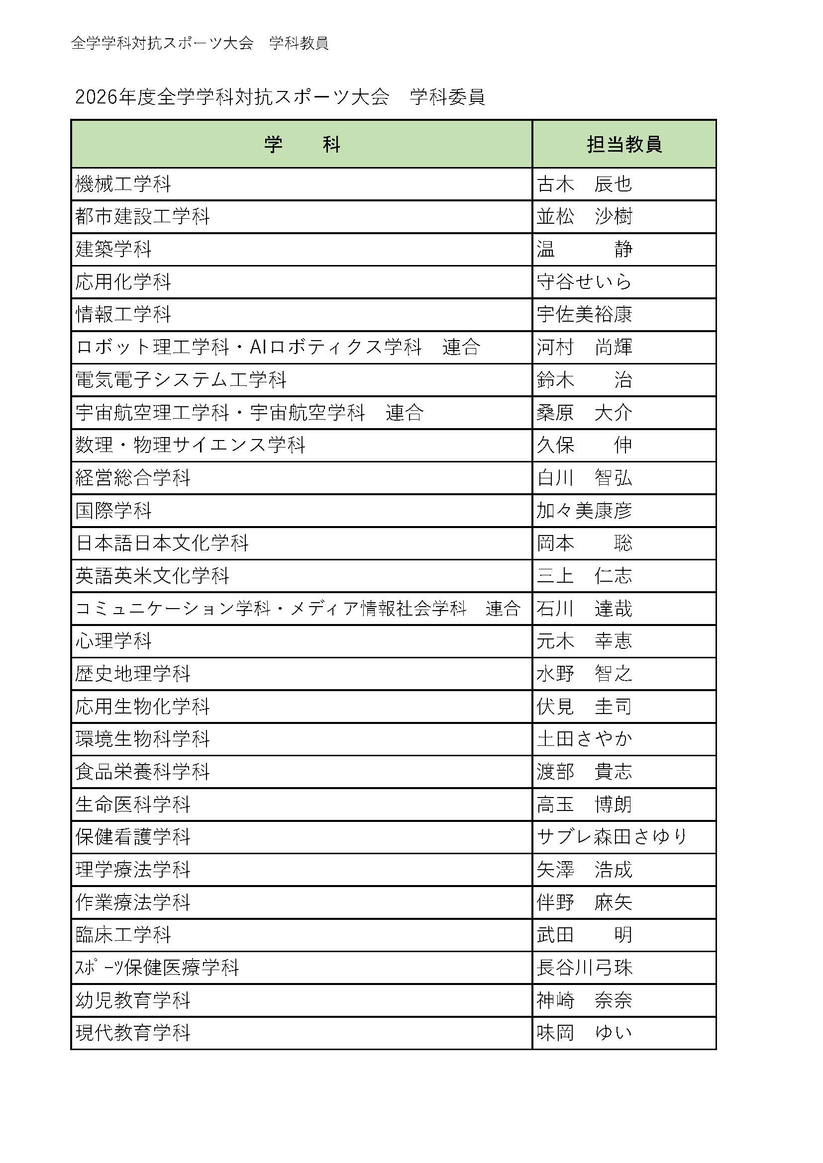 2026年度の種目(大縄跳び・ダンシング玉入れ・リレー)が決定しました。参加を希望される場合は、各学科運営委員(教員)へ申込みをしてください。